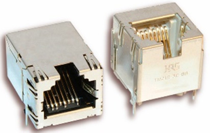 The modular jacks feature (optional) optical indicators that are integrated into the connector to save board space and decrease electrical noise.